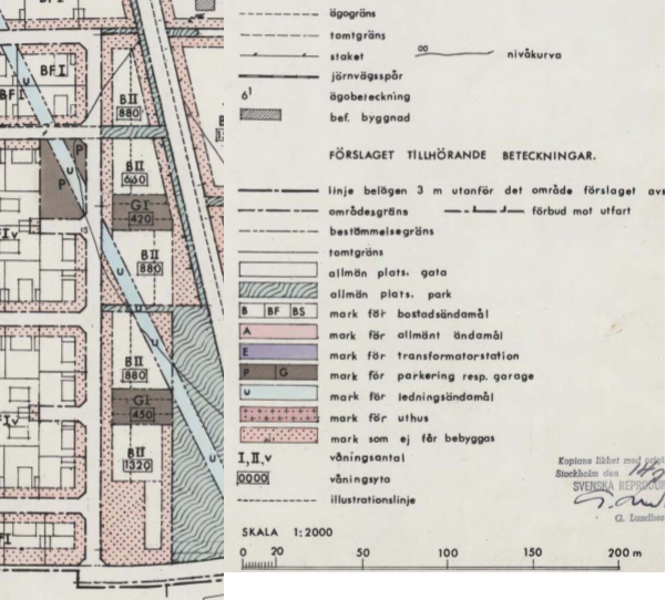 Ett urklipp från byggnadsplanen på Nordstrands väg. OBS! Prickad mark får ej bebyggas